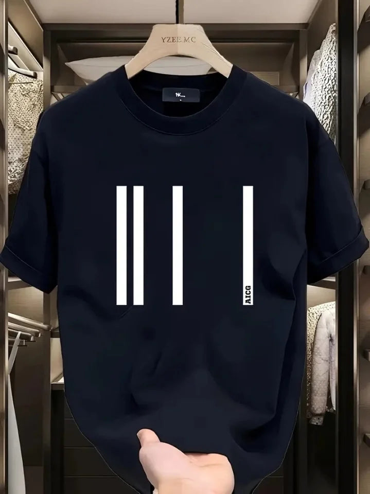 Baskılı Oversize Bisiklet Yaka T-shirt - Siyah