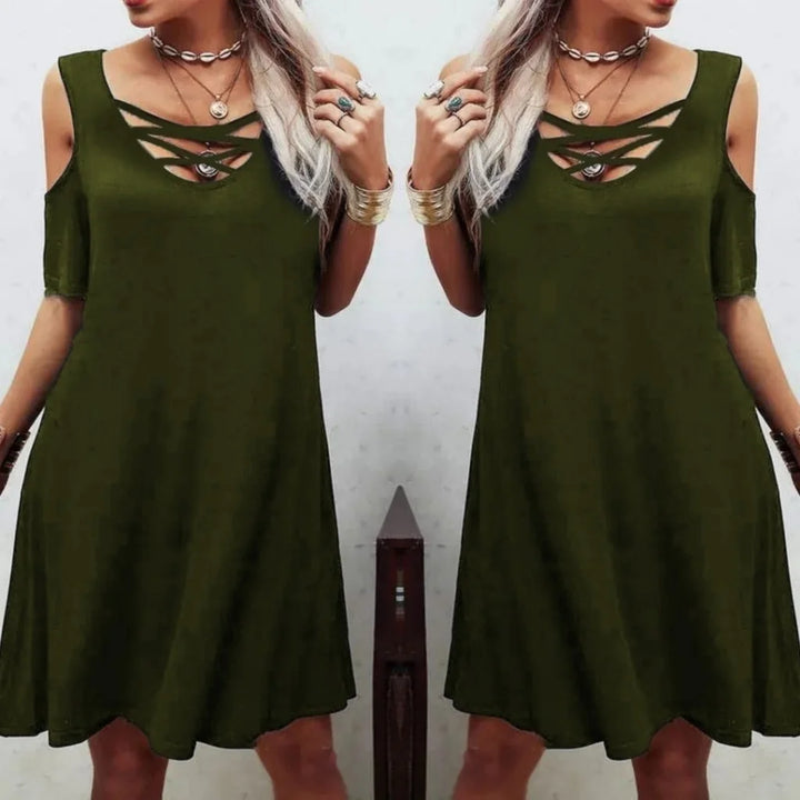 Dekolteli Bağcık Detay Viskon Kumaş Elbise