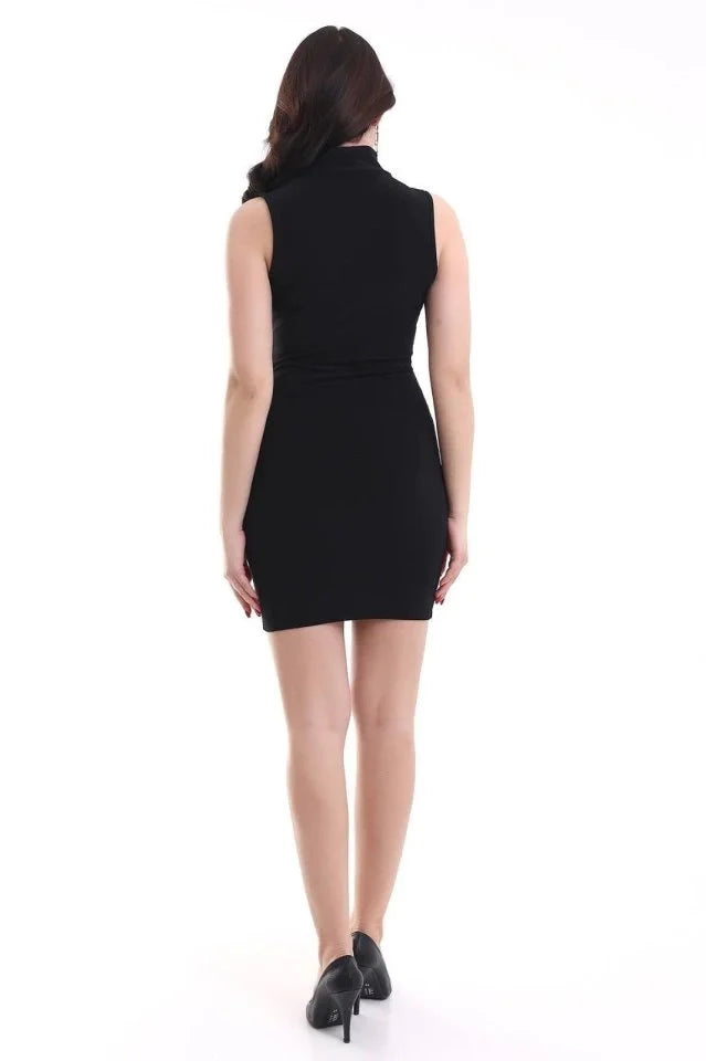 Kadın Asimetrik Yaka Sandy Kumaş Fırsat Ürün Diz Üstü Elbise