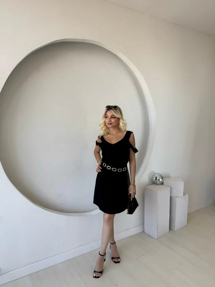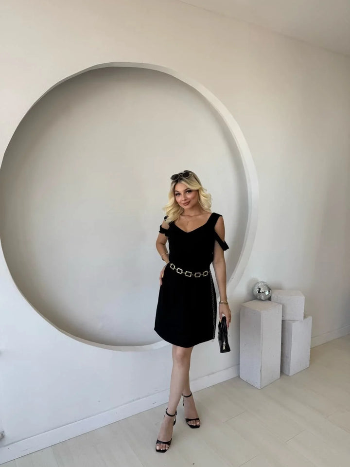 Kadın Askılı Soğuk Omuz Detaylı Modal Elbise