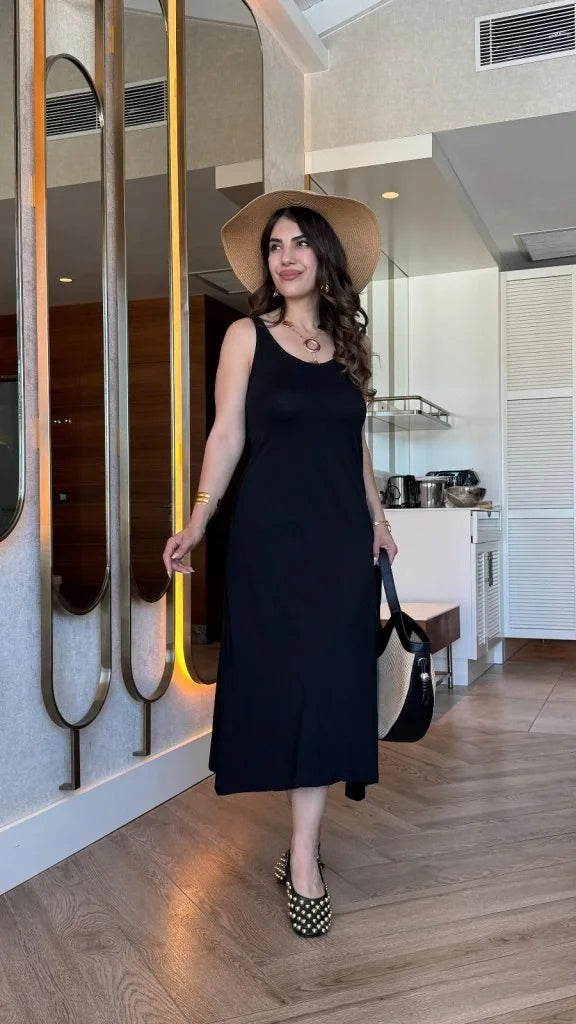 Kadın Askılı Yuvarlak Yakalı Viskon Elbise