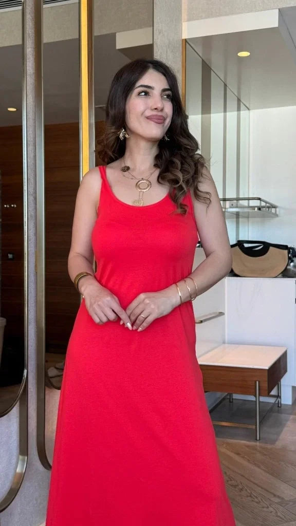 Kadın Askılı Yuvarlak Yakalı Viskon Elbise