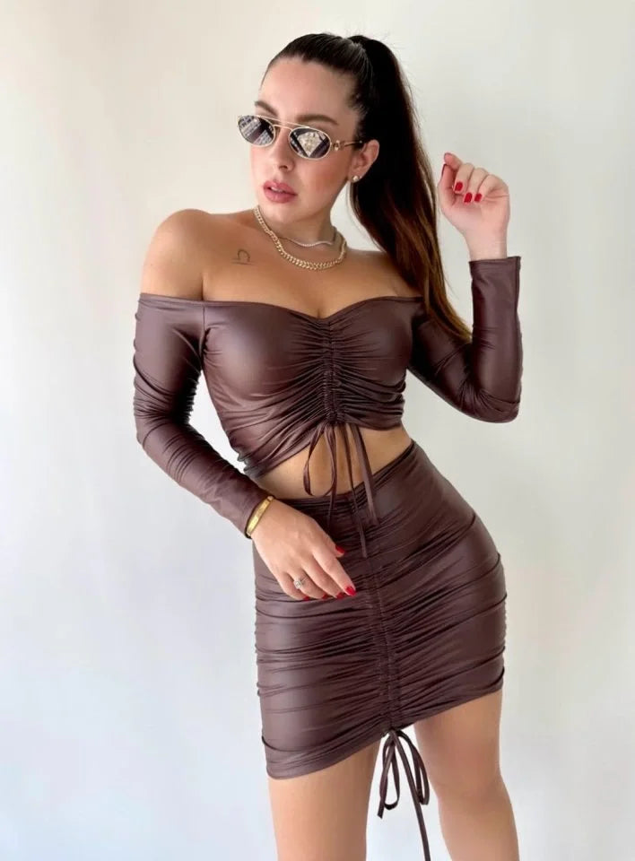 Kadın Büzgülü Deri Etek Takım Fırsat Ürün