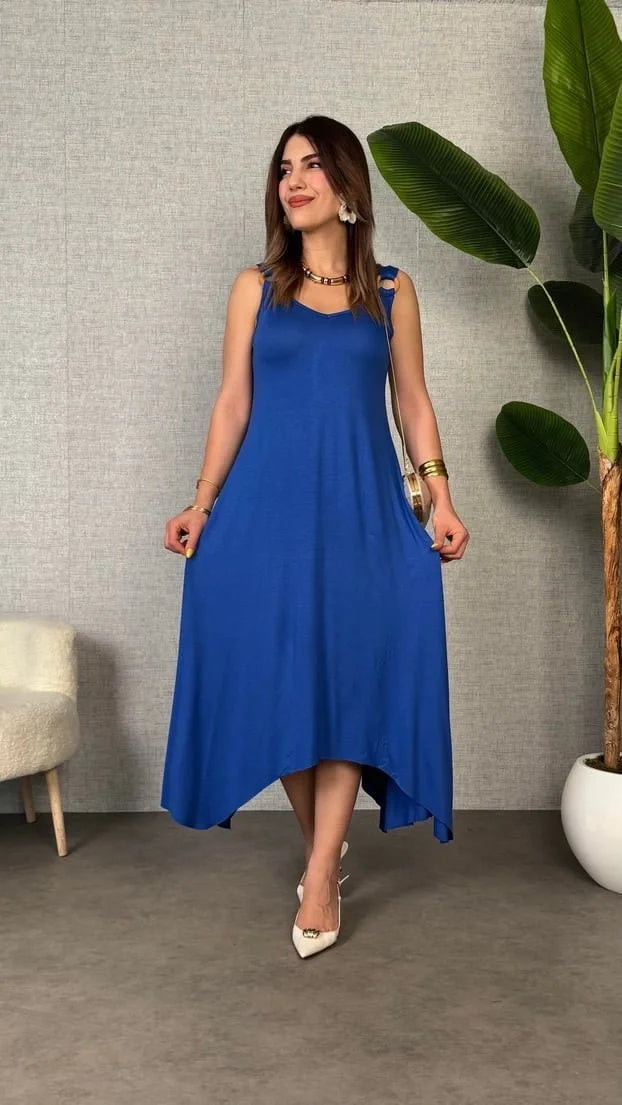 Kadın çan Dokuma Kumaş V Yaka Asimetrik Kesim Elbise