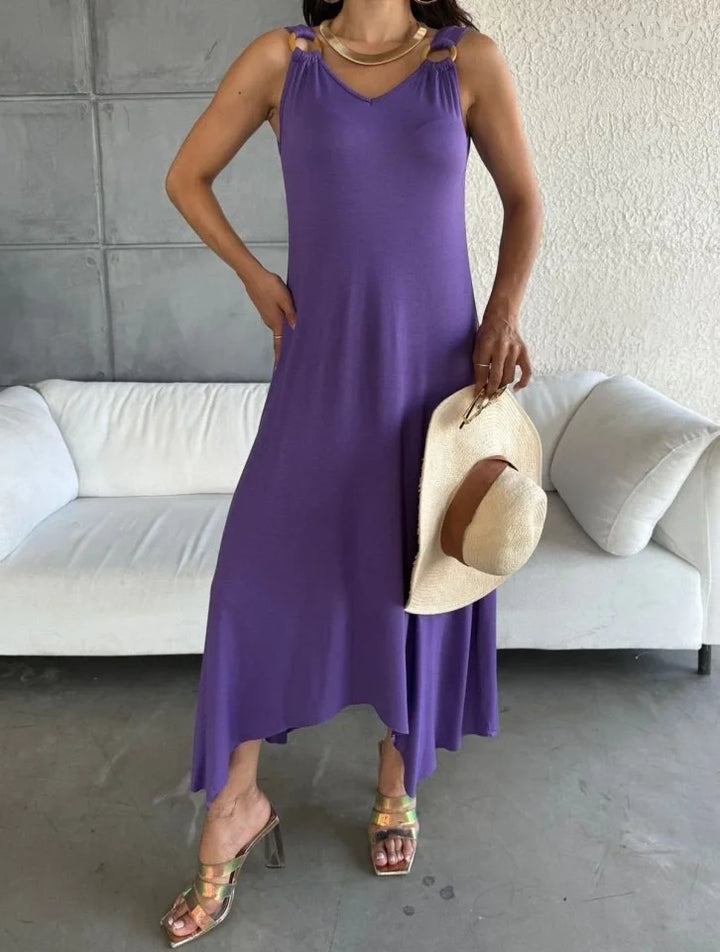 Kadın çan Dokuma Kumaş V Yaka Asimetrik Kesim Elbise