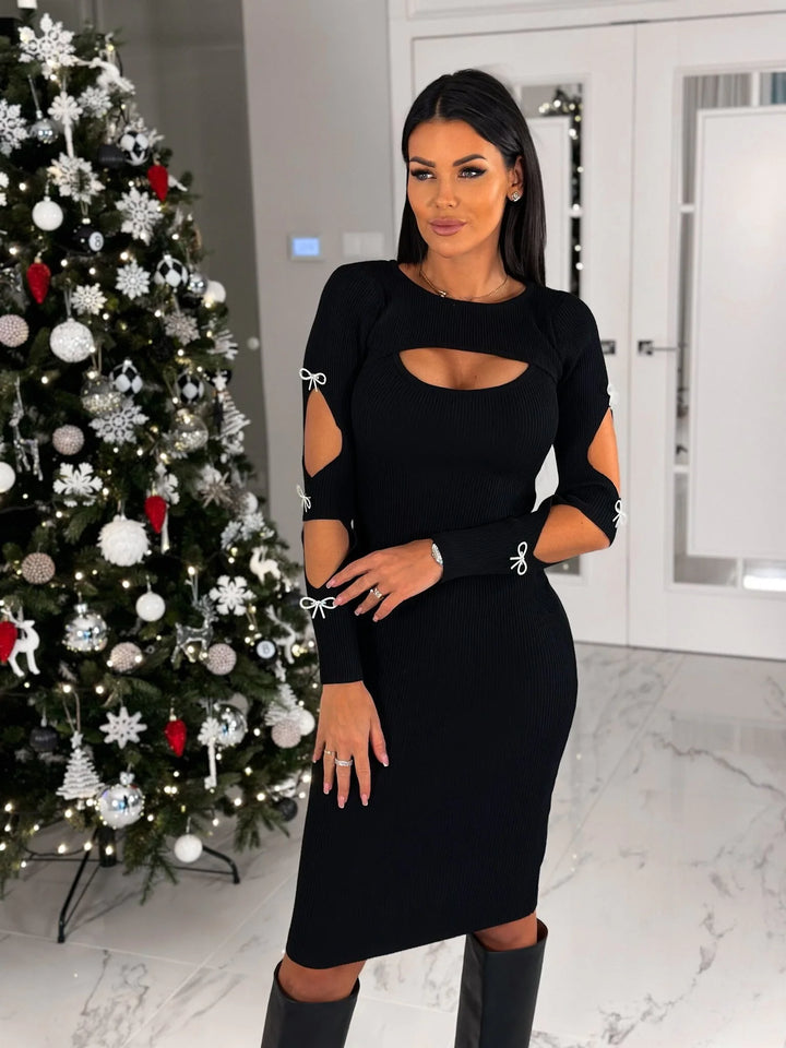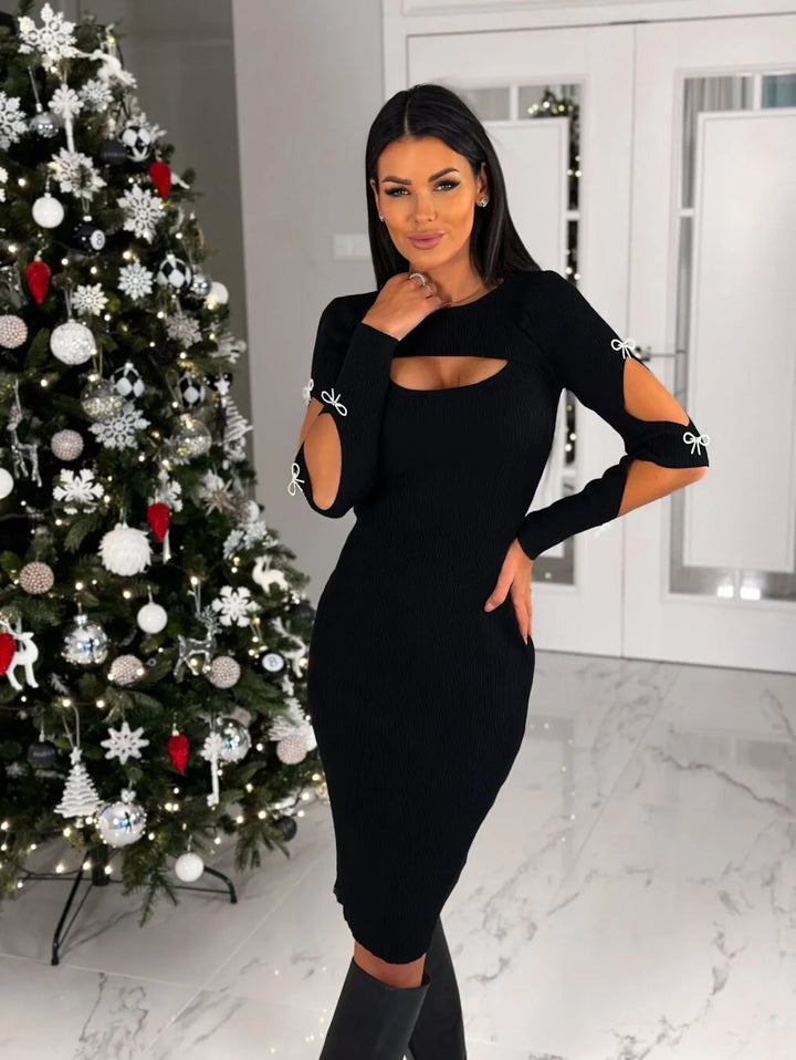 Kadın Dekolte Detaylı Scuba Dalgıç Kumaş Taş Aksesuarli Elbise