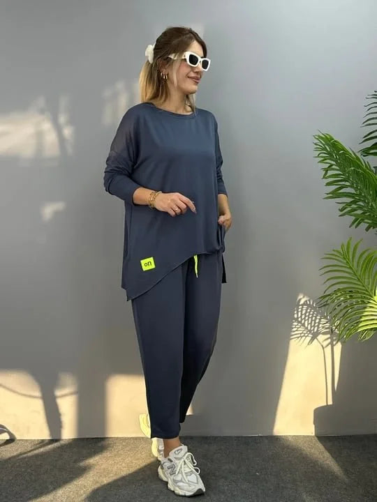 Kadın Iki Iplik Viskon Pamuk Kumaş Arma Detaylı Ikili Takım