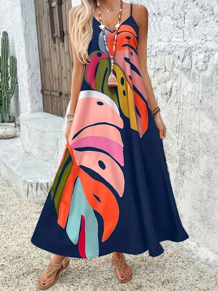 Kadın Ip Askılı V Yakalı Desenli Süprem Maxi Elbise