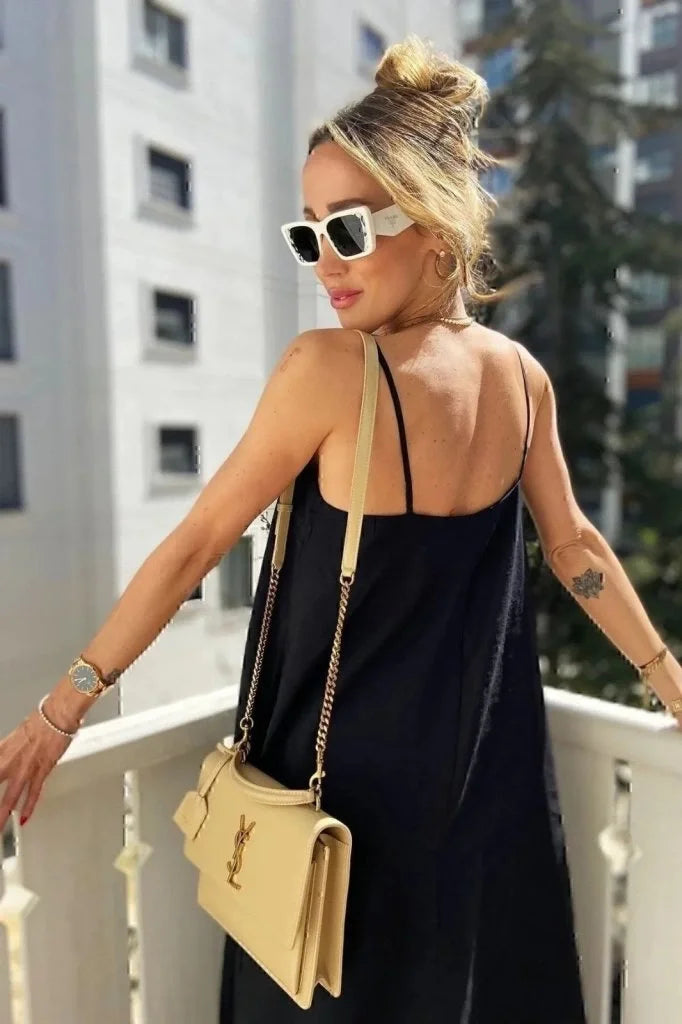 Kadın Ip Askılı V Yakalı Uzun Aerobin Elbise