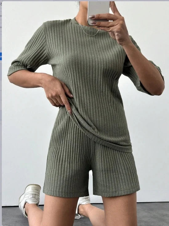 Kadın Kısa Kollu Bisiklet Yaka Kaşkorse Bluz şort Ikili Takım