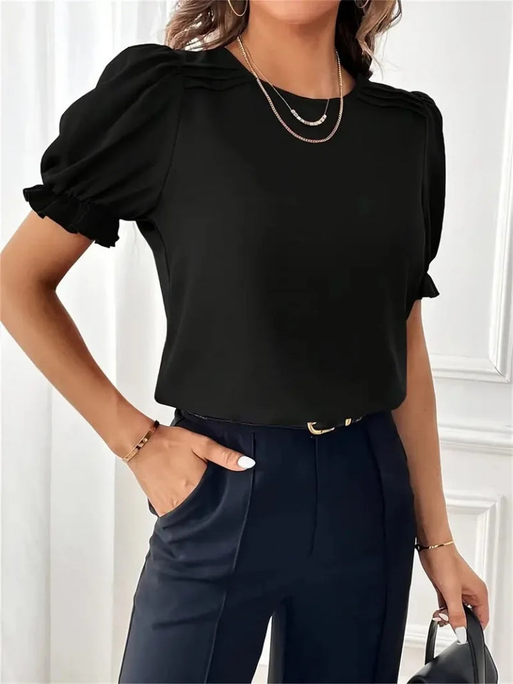 Kadın Kısa Kollu Bisiklet Yaka Kolları Gipeli Ithal Krep Bluz