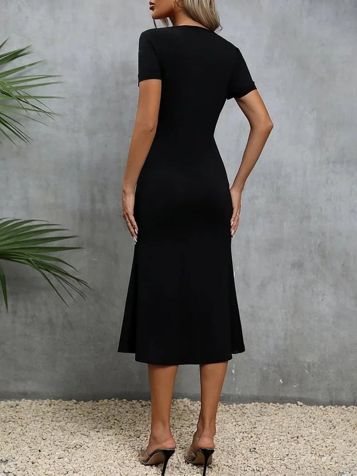 Kadın Kısa Kollu Kare Yakalı Ip Detaylı Janjan Krep Elbise
