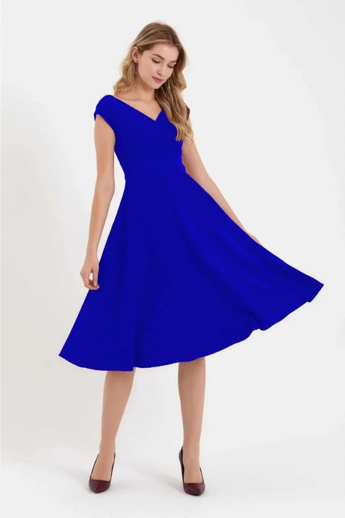 Kadın Kısa Kollu Kruvaze Yaka Eteği Volanlı Krep Elbise