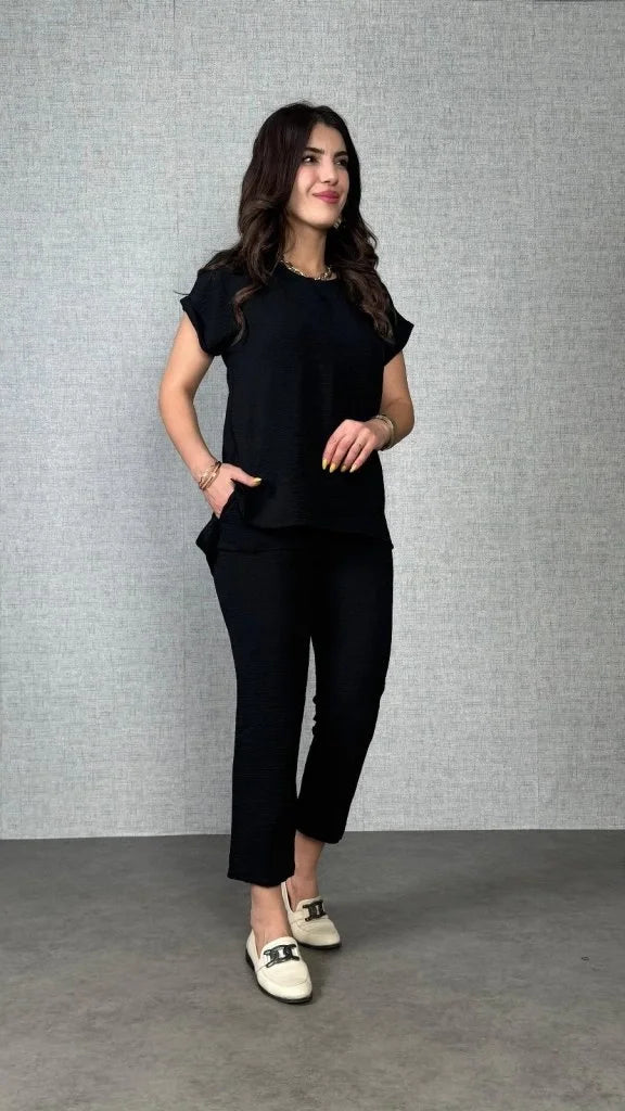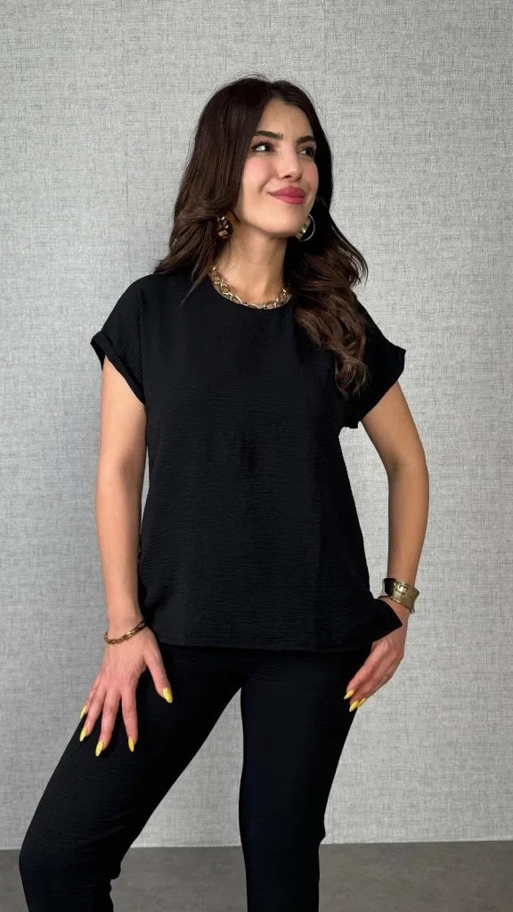 Kadın Kısa Kollu Yuvarlak Yaka Aerobin Bluz Ve Pantolon Ikili Takım