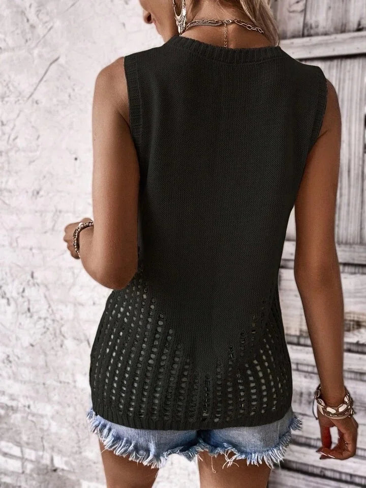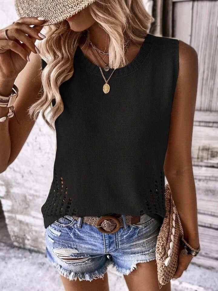Kadın Kolsuz Bisiklet Yakayanları Ajur Detay Triko Bluz