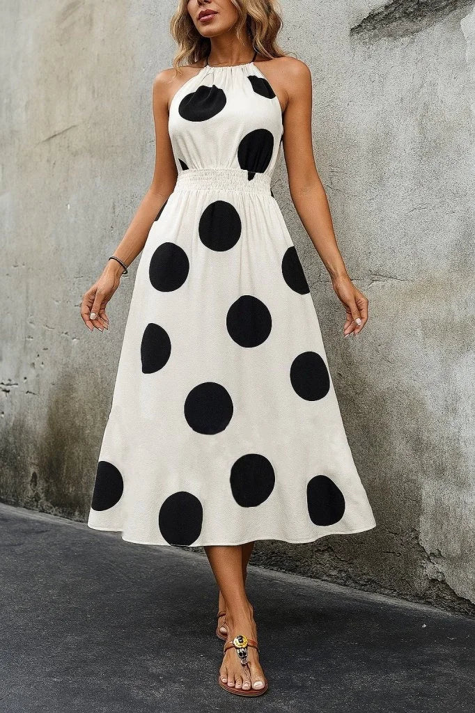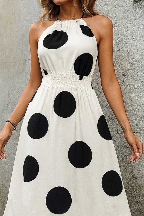 Kadın Kolsuz Boyundan Bağlamalı Beli Lastikli Dijital Baskı Süprem Uzun Elbise
