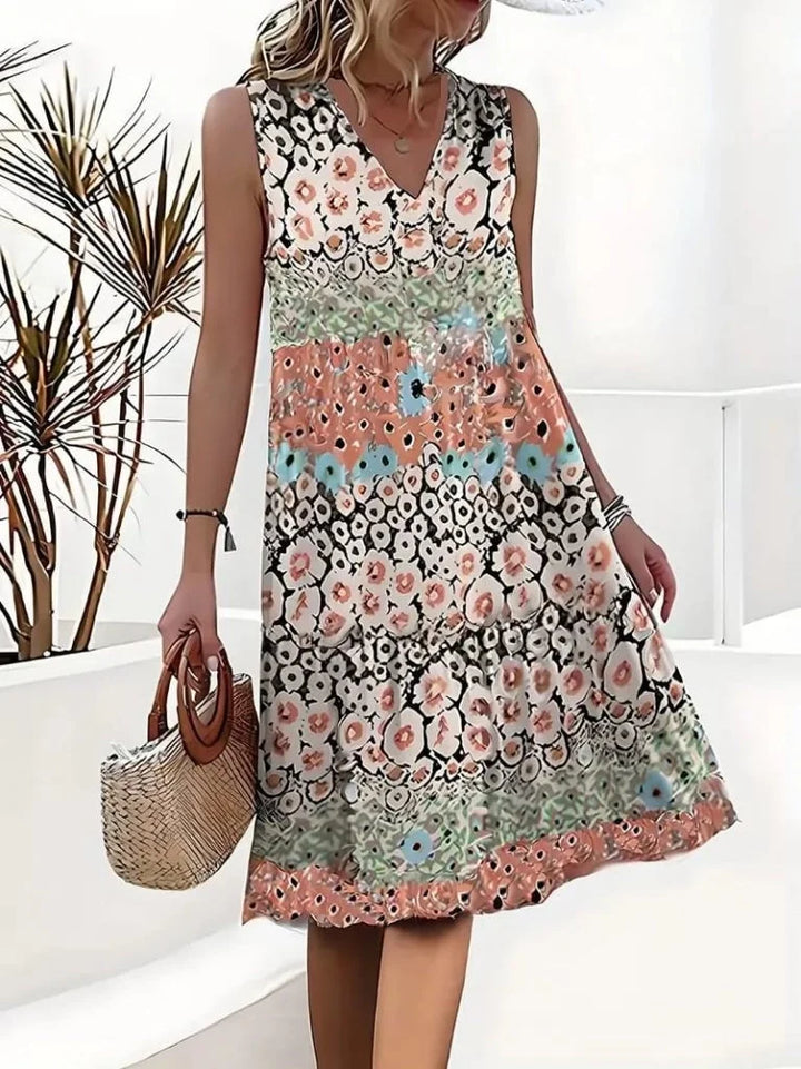 Kadın Kolsuz V Yaka çiçek Desenli Süprem Elbise