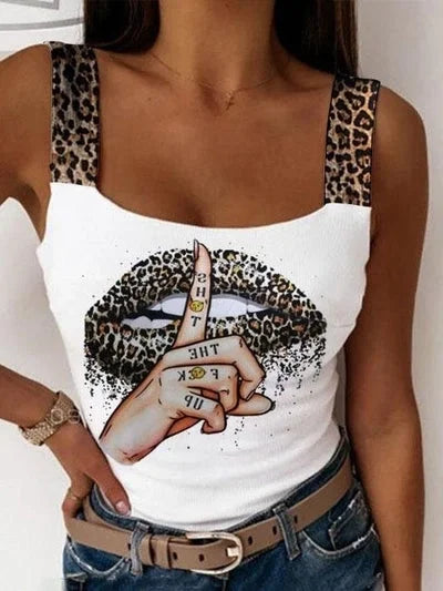 Kadın Leopar Askılı Leopar Baskılı Mikro Kumaş Bluz