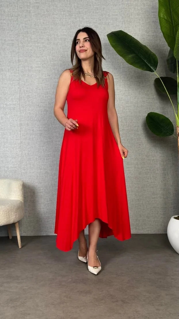 Kadın Omuz Askılı Toka Detay Maxi Boy Elbise