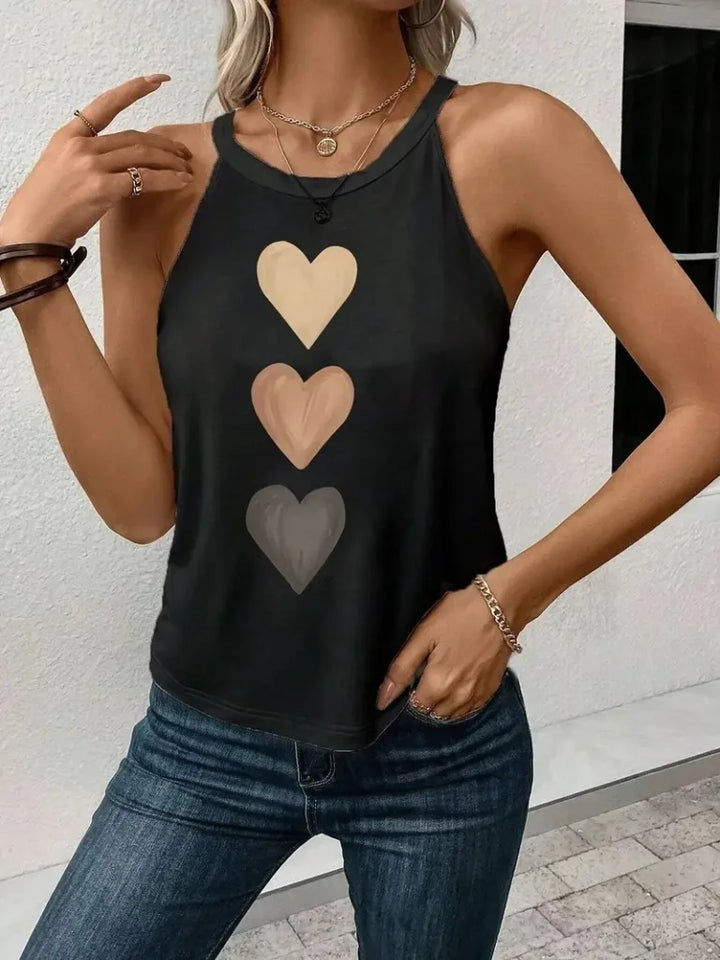 Kadın Omuzlardan Açık Boyundan Askılı Kalp Baskılı Viskon Bluz