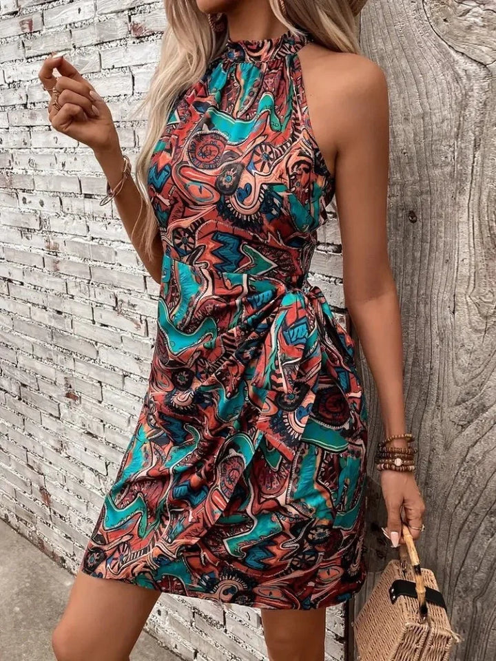 Kadın Omuzlardan Açık Yarı Balıkçı Yaka Yandan çapraz Bağlama Detaylı Süprem Kısa Elbise