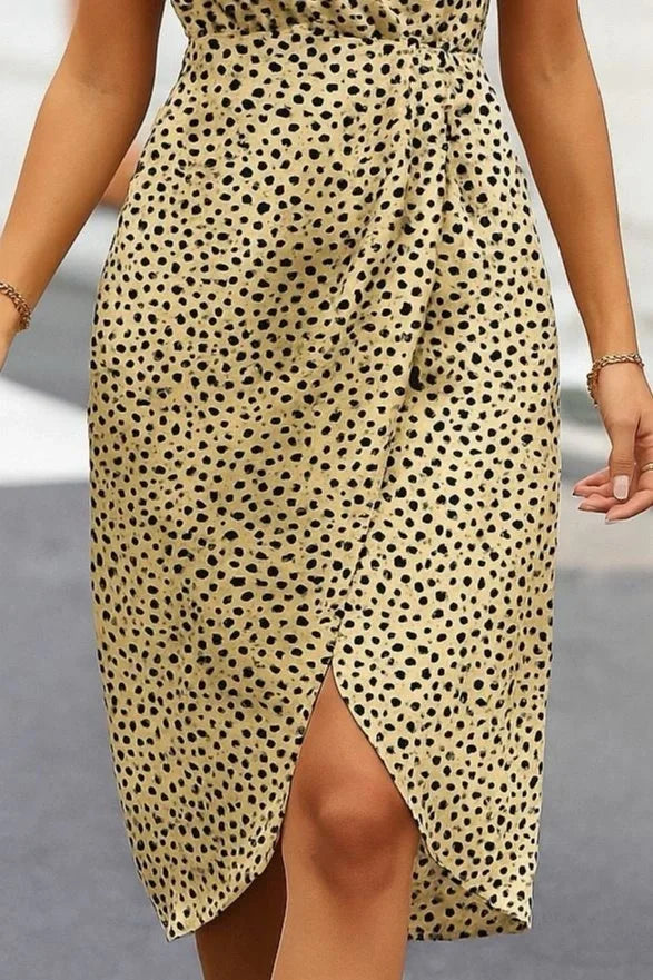 Kadın Sıfır Kol Kruvaze Yaka önden çapraz Kesim Detaylı Desenli Oysho Süprem Elbise