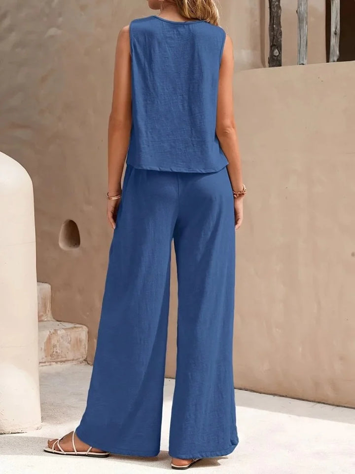Kadın Sıfır Kollu Bisiklet Yaka Aerobin Bluz Ve Pantolon Ikili Takım