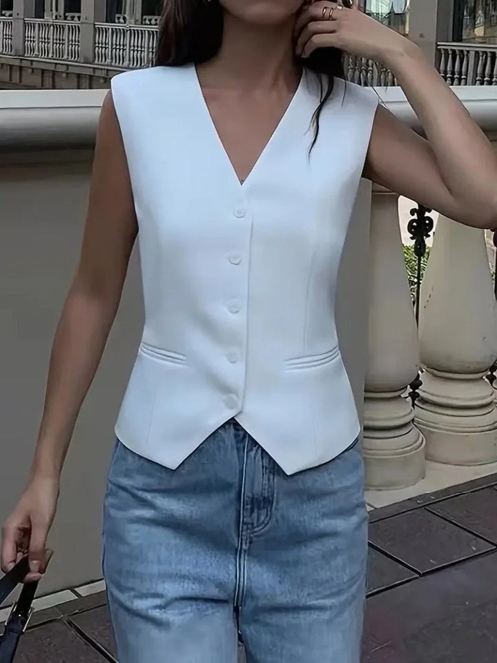 Kadın Sıfır Kollu önden Düğmeli Atlas Yelek
