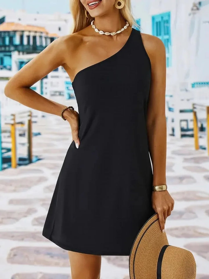 Kadın Tek Omuz Askılı Krep Mini Elbise
