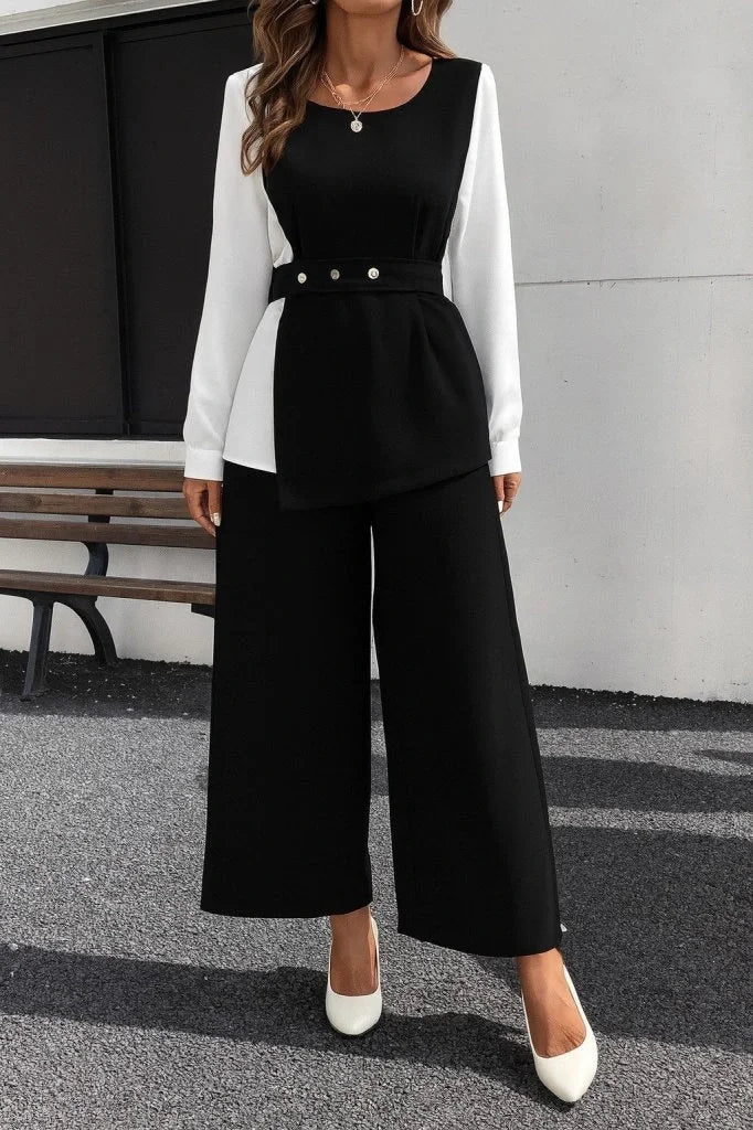 Kadın Uzun Kollu Açık Yakalı çift Renkli Kemerli Ithal Krep Ikili Takım