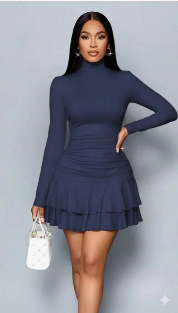 Kadın Uzun Kollu Balıkçı Yaka Mini Fırfırlı Sandy Elbise