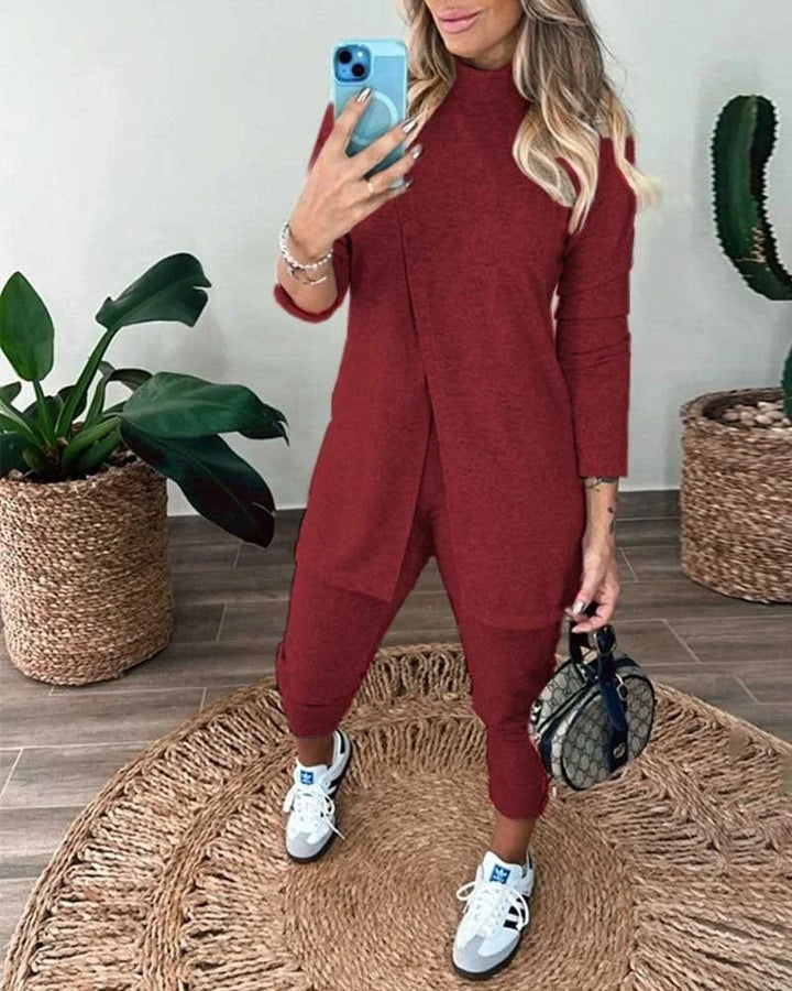 Kadın Uzun Kollu Balıkçı Yaka önden Düğmeli Bluz Ve Pantolon Yumoş Ikili Takım