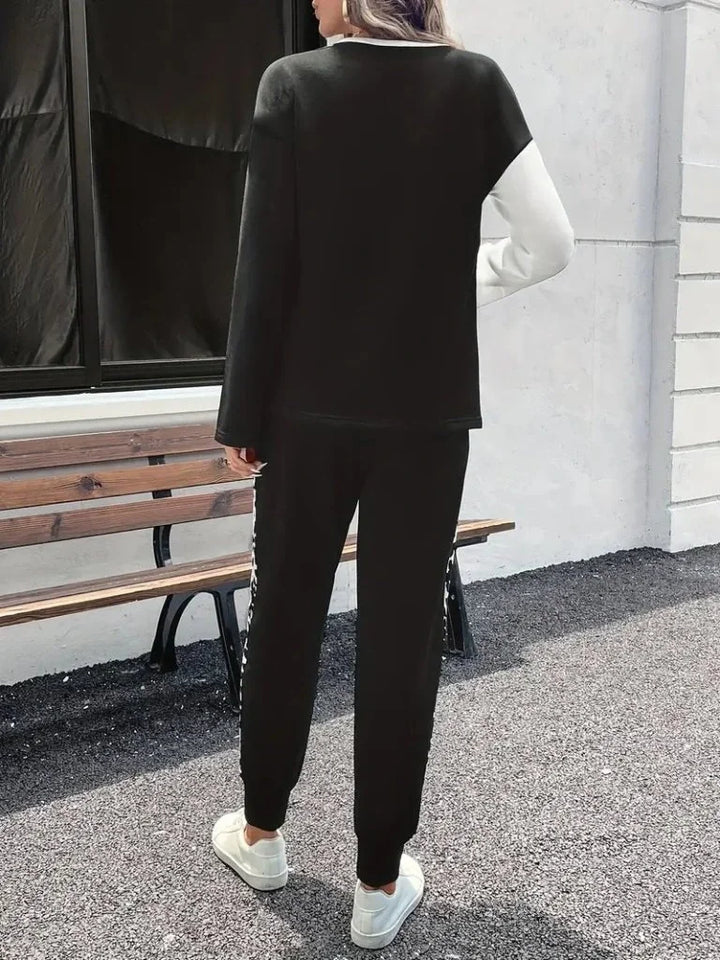 Kadın Uzun Kollu Bisiklet Yaka çift Renkli Viskon Iki Iplik Bluz Ve Pantolon Ikili Takım