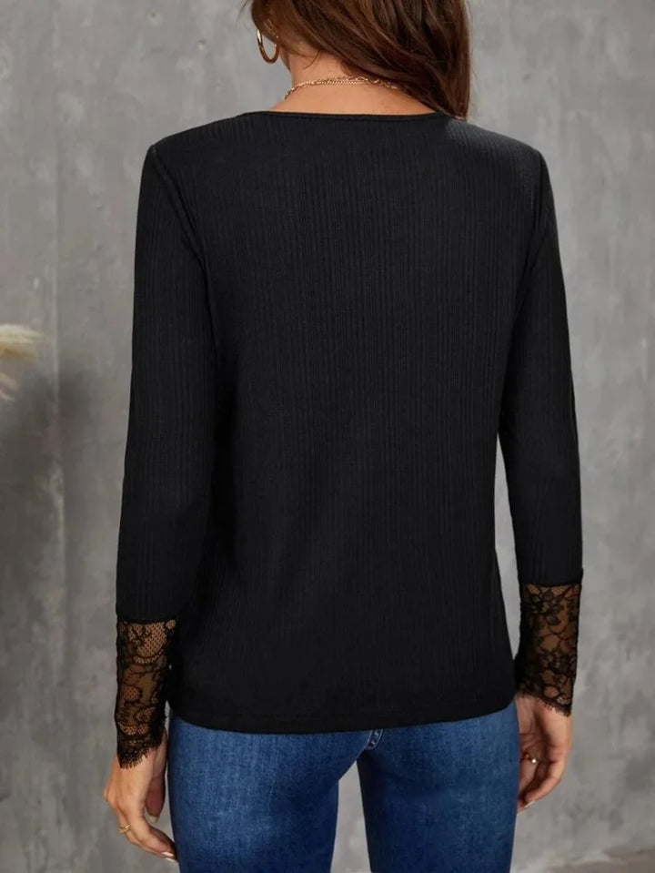 Kadın Uzun Kollu Bisiklet Yaka Dantel Detaylı Burgu Bluz
