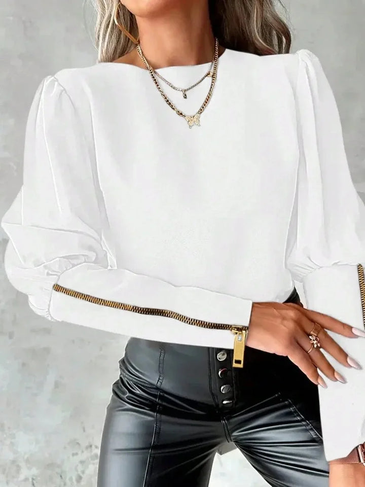 Kadın Uzun Kollu Bisiklet Yaka Fermuar Detaylı Ithal Krep Bluz
