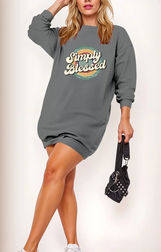 Kadın Uzun Kollu Bisiklet Yaka Yazılı Viskon Iki Iplik Elbise