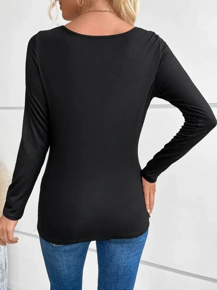 Kadın Uzun Kollu Derin Degaje Yakalı Taşlı Sandy Bluz
