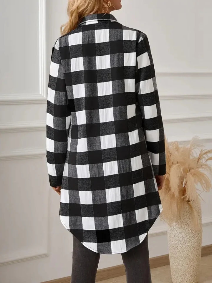 Kadın Uzun Kollu Ekoseli önden Düğmeli Dokuma Uzun Gömlek
