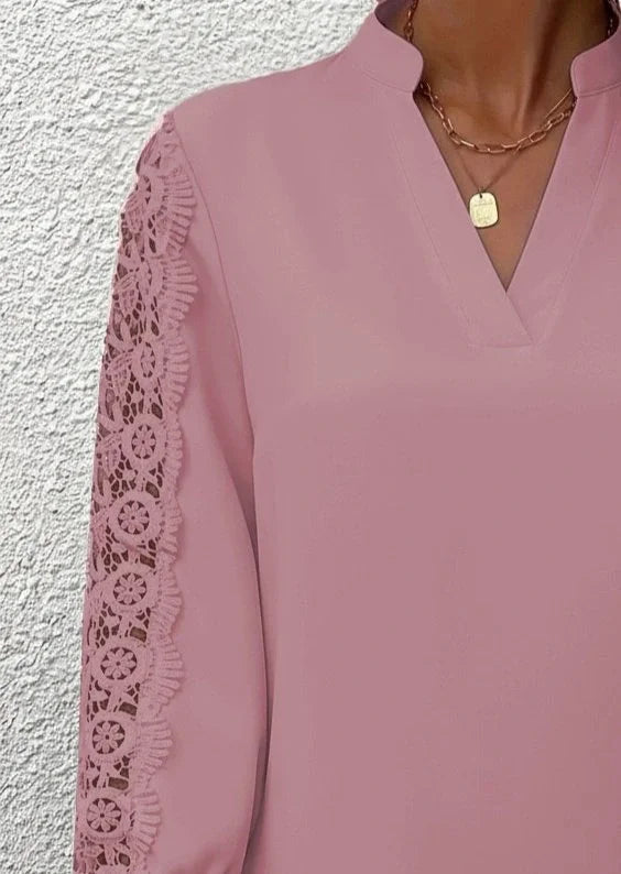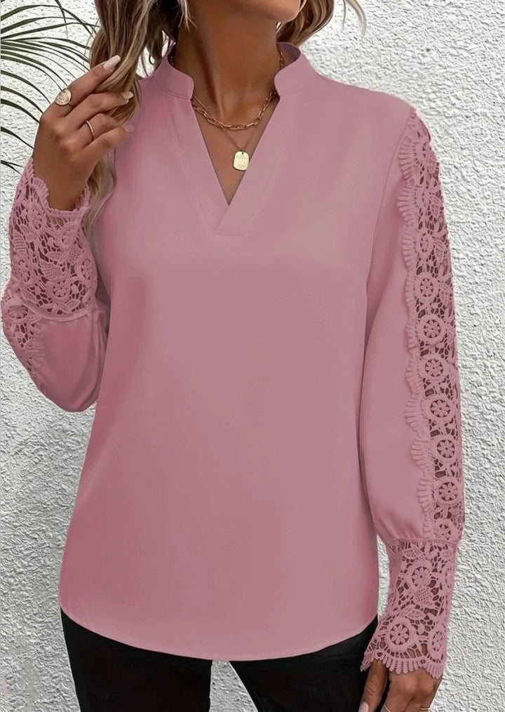 Kadın Uzun Kollu Hakim Yaka Kolları Dantel Detaylı Ithal Krep Bluz