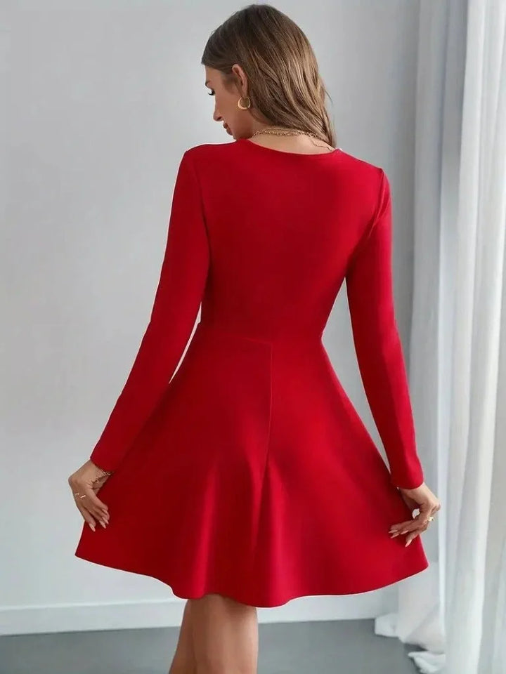 Kadın Uzun Kollu Inci Yakalı Kısa Ithal Krep Elbise
