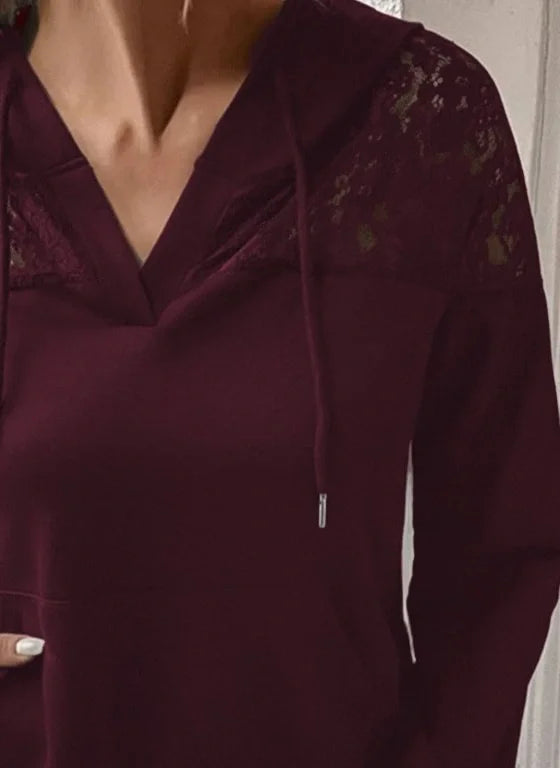 Kadın Uzun Kollu Kapşonlu Bağcıklı Dantelli Viskon Iki Iplik Bluz