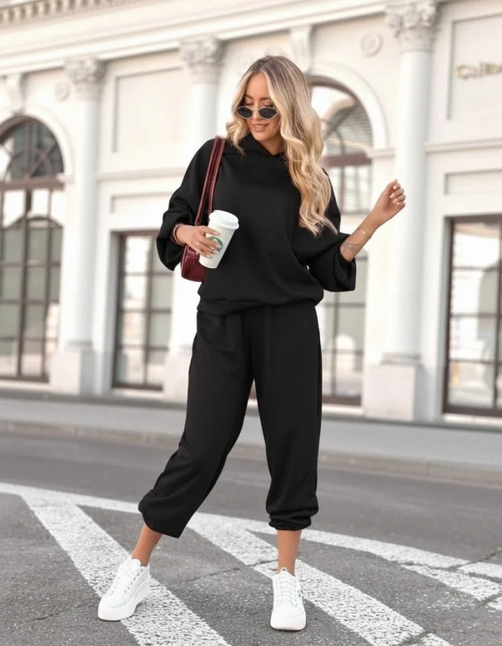 Kadın Uzun Kollu Kapşonlu Viskon Iki Iplik Bluz Ve Pantolon Ikili Takım