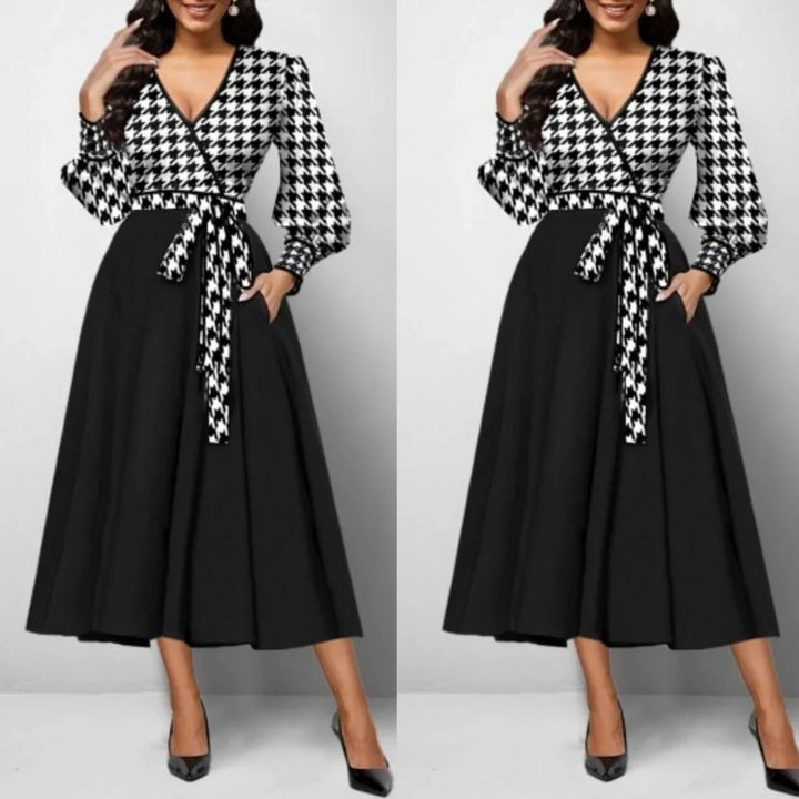 Kadın Uzun Kollu Kruvaze Yaka Dalgıç Krep Midi Boy Elbise