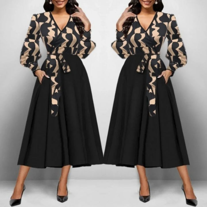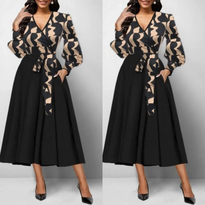 Kadın Uzun Kollu Kruvaze Yaka Dalgıç Krep Midi Boy Elbise