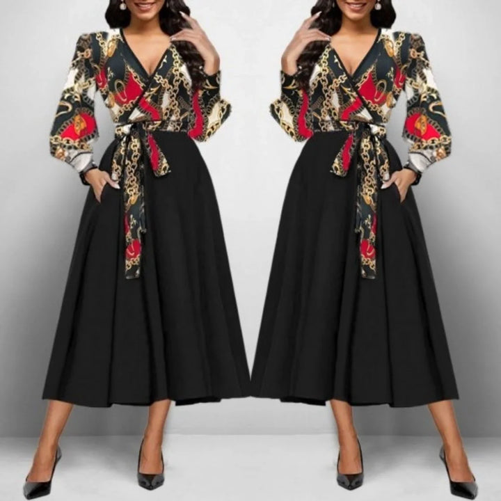 Kadın Uzun Kollu Kruvaze Yaka Dalgıç Krep Midi Boy Elbise