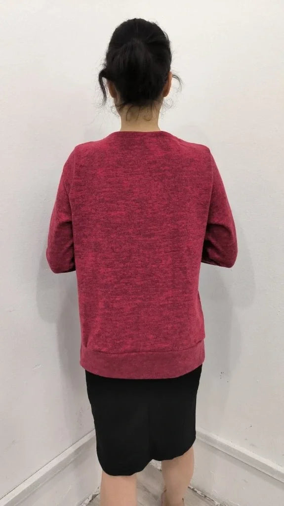 Kadın Uzun Kollu Kruvaze Yaka Kol Ve Etek Ucu Manşet Detay Yumoş Bluz