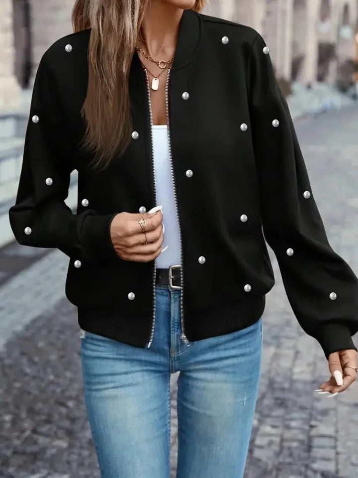 Kadın Uzun Kollu önden Fermuarlı Incili Kısa Modal Ceket