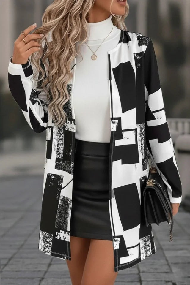 Kadın Uzun Kollu önü Açık Desenli Modal Kısa Ceket