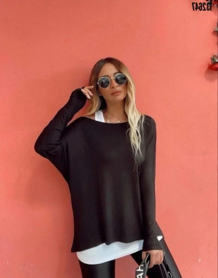 Kadın Uzun Kollu Tek Omuzdan Açık çilek Bluz Ve Viskon Atlet Ikili Takım