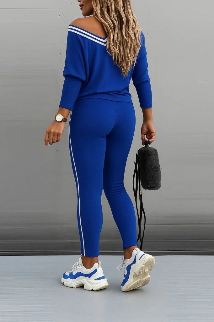 Kadın Uzun Kollu Tek Omuzu Açık Detaylı Viskon Iki Iplik Bluz Ve Pantolon Ikili Takım